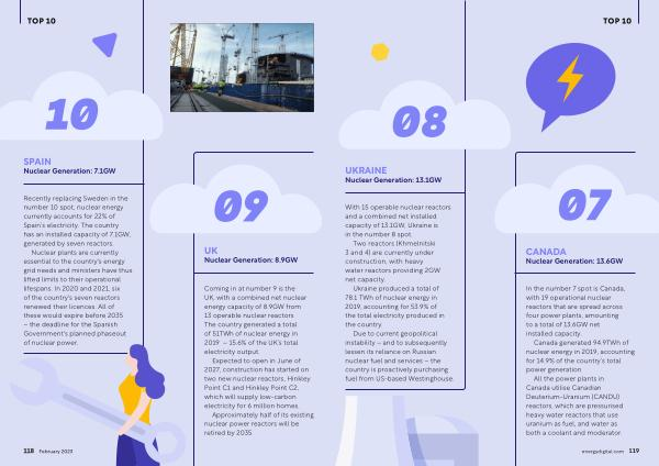 In the number 7 spot is Canada , with 19 operational nuclear reactors that are spread across four power plants , amounting to a total of 13.6GW net installed capacity .
